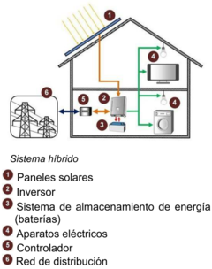 El suministro eléctrico proviene de los paneles solares y de la red de distribución. El sistema incluye un medidor bidireccional (suministrado por la empresa distribuidora)