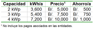 A continuación, presentamos una tabla con referencia de precios para distintas capacidades de generación. Estos paquetes son de tipo interconectado a la red (sin almacenamiento).